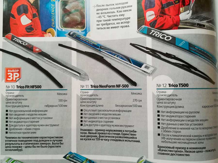 Результаты теста дворников и выводы журнала "За Рулем"